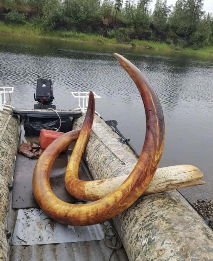 这项工作的危险性不容小觑,去年该河流地区就发生过好几起事故。这属于把脑袋别在裤腰带上的活儿。不过高风险往往伴随着高收益,这支队伍近期就幸运地发掘到一对保存完好的红色猛犸象牙,仅用了两周时间就取得了如此丰硕的成果。